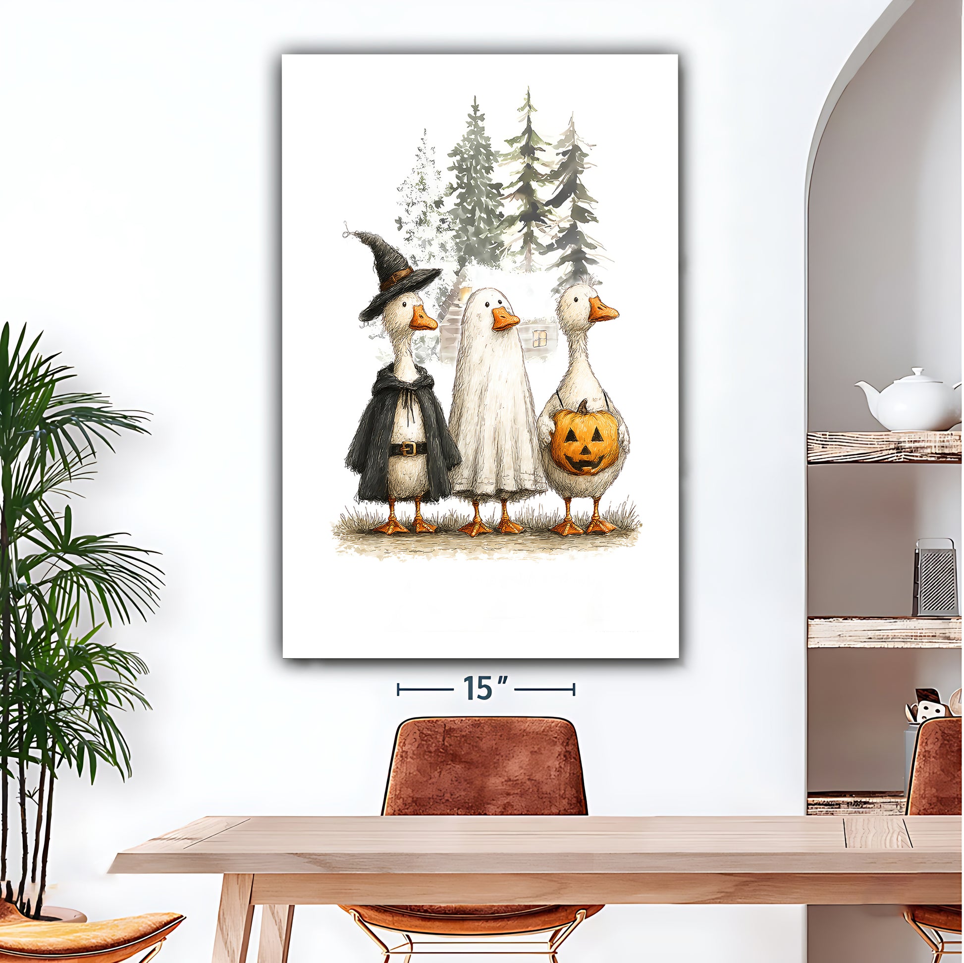 "These little Halloween geese are just too cute! The print quality is excellent and it fits so well with my seasonal décor. Shipping was quick as well."
