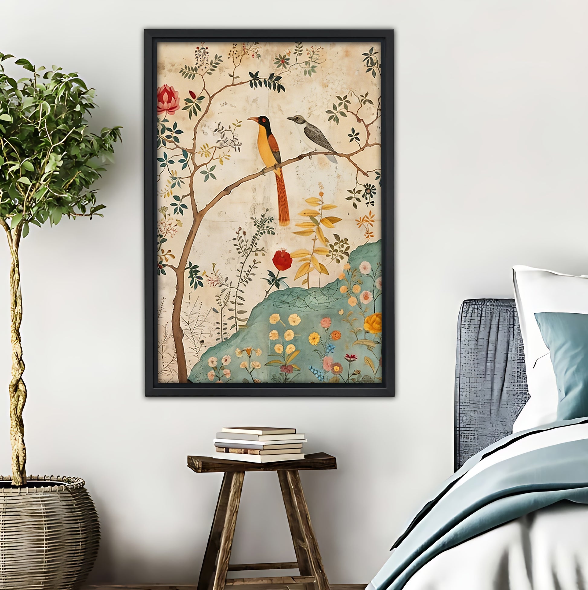 "This vintage bird and floral print is the perfect touch for my cottagecore bedroom! The muted, earthy tones complement my linen bedding, and the delicate details feel so calming. I can’t stop staring at it."