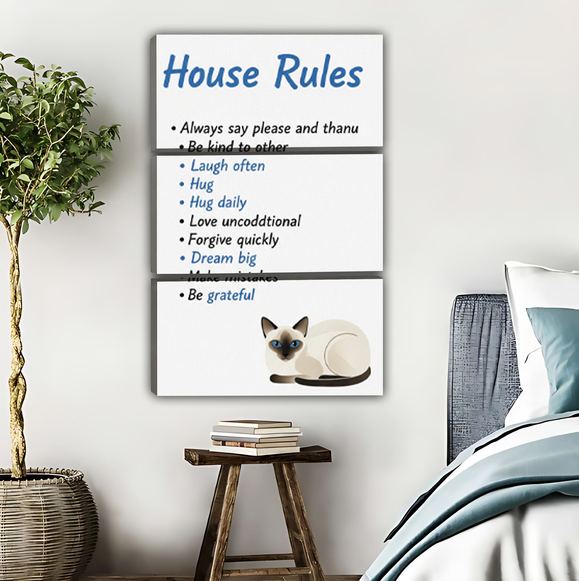 Minimalist House Rules Wall Art with Cute Cat Illustration|Liberty Signs #L498