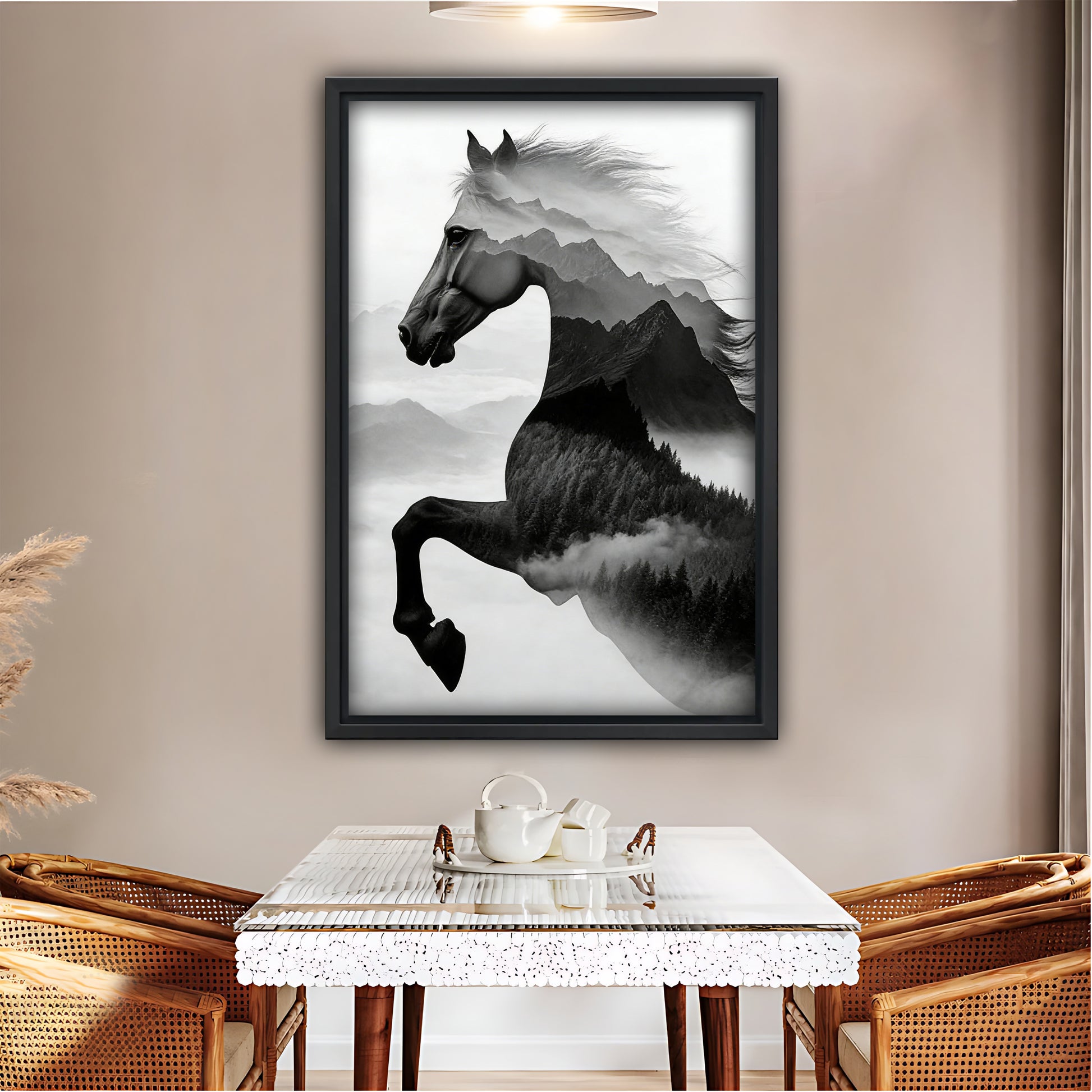 A: Framed art includes a decorative outer wooden frame and comes ready to hang. Canvas art is stretched over an internal wooden stretcher (no outer frame) — it is also ready to hang, and you can later add a decorative frame if you’d like.