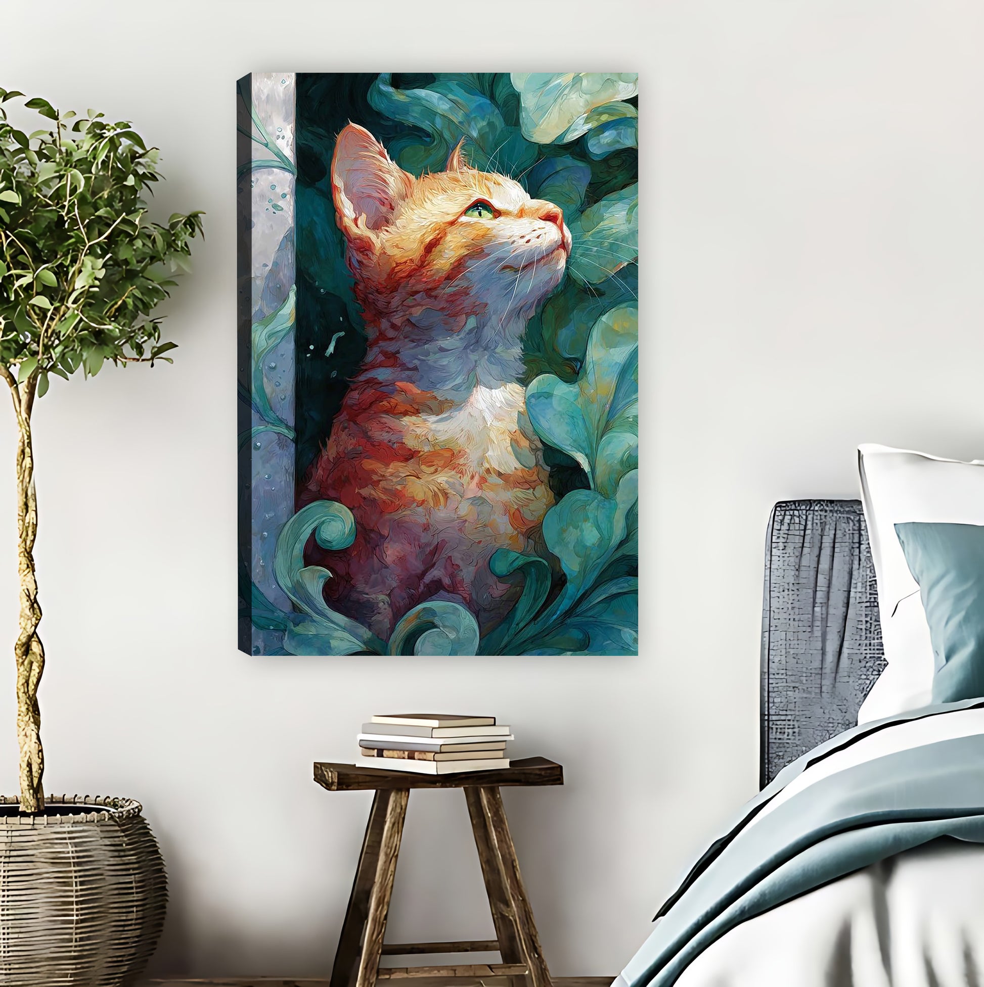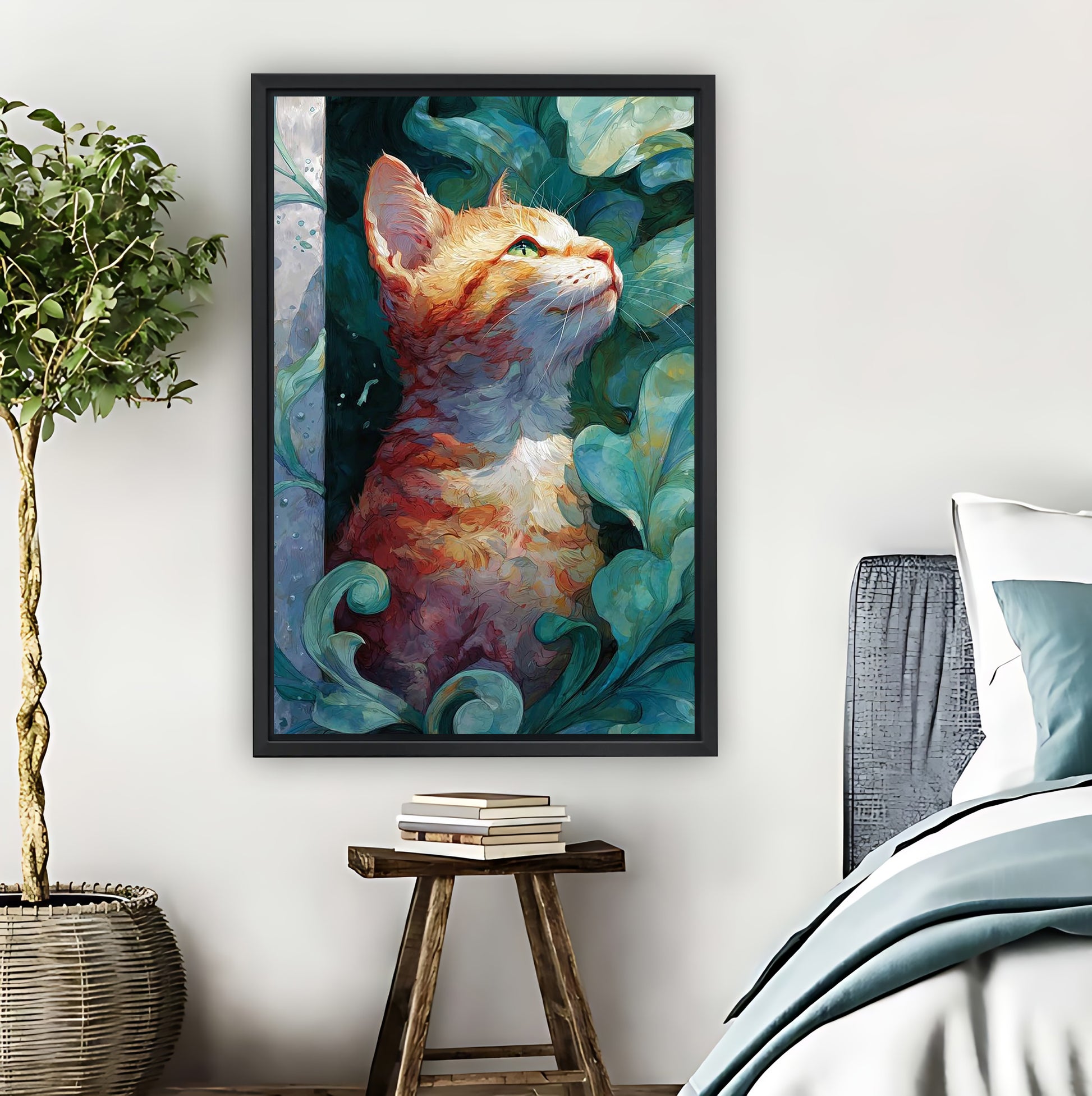 "This orange cat print is so serene! The painterly details make my reading nook feel like a calm escape."