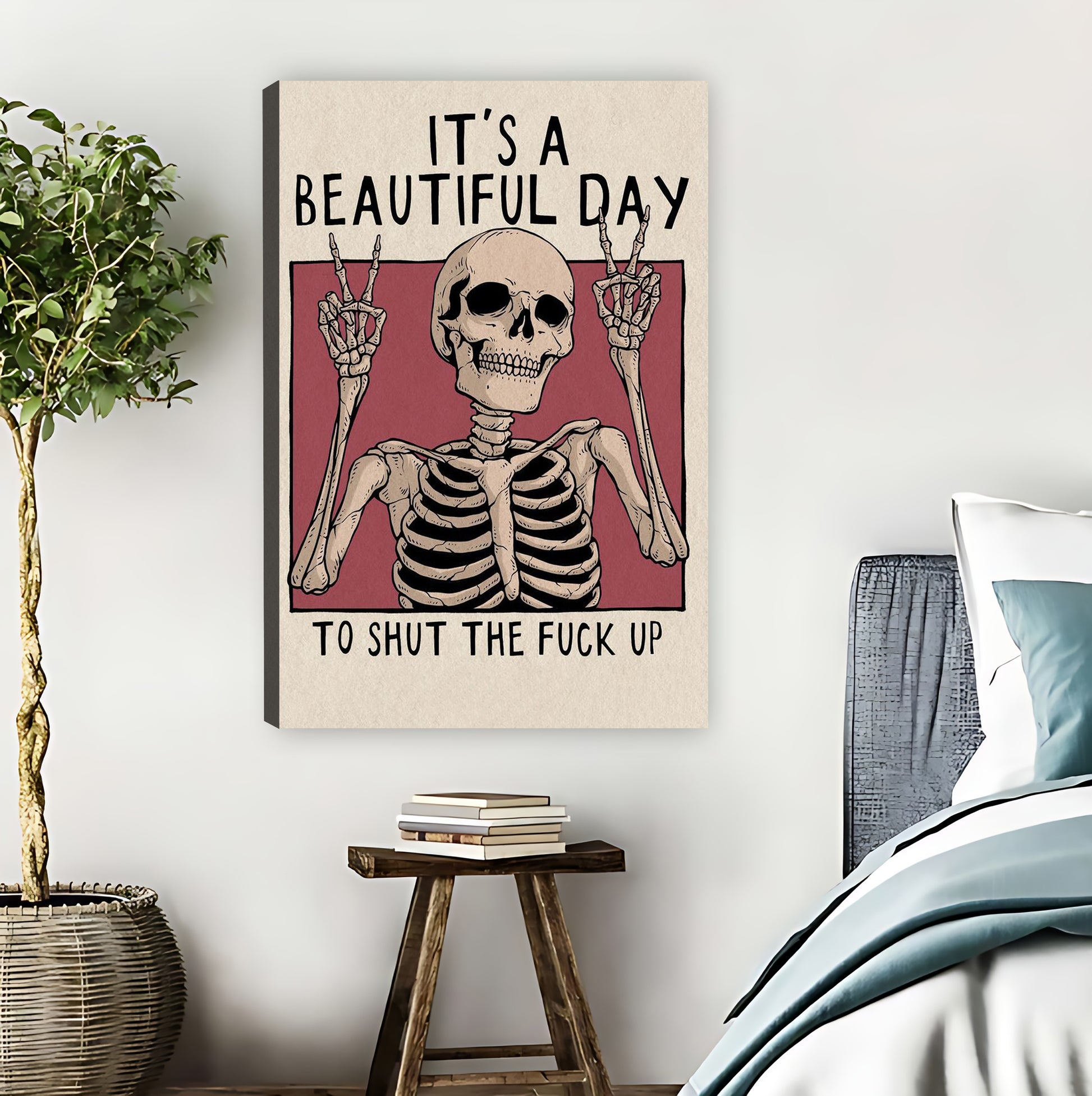 "It's a Beautiful Day to Shut the Fuck Up" Funny Skeleton Wall Art| Liberty Signs #L891