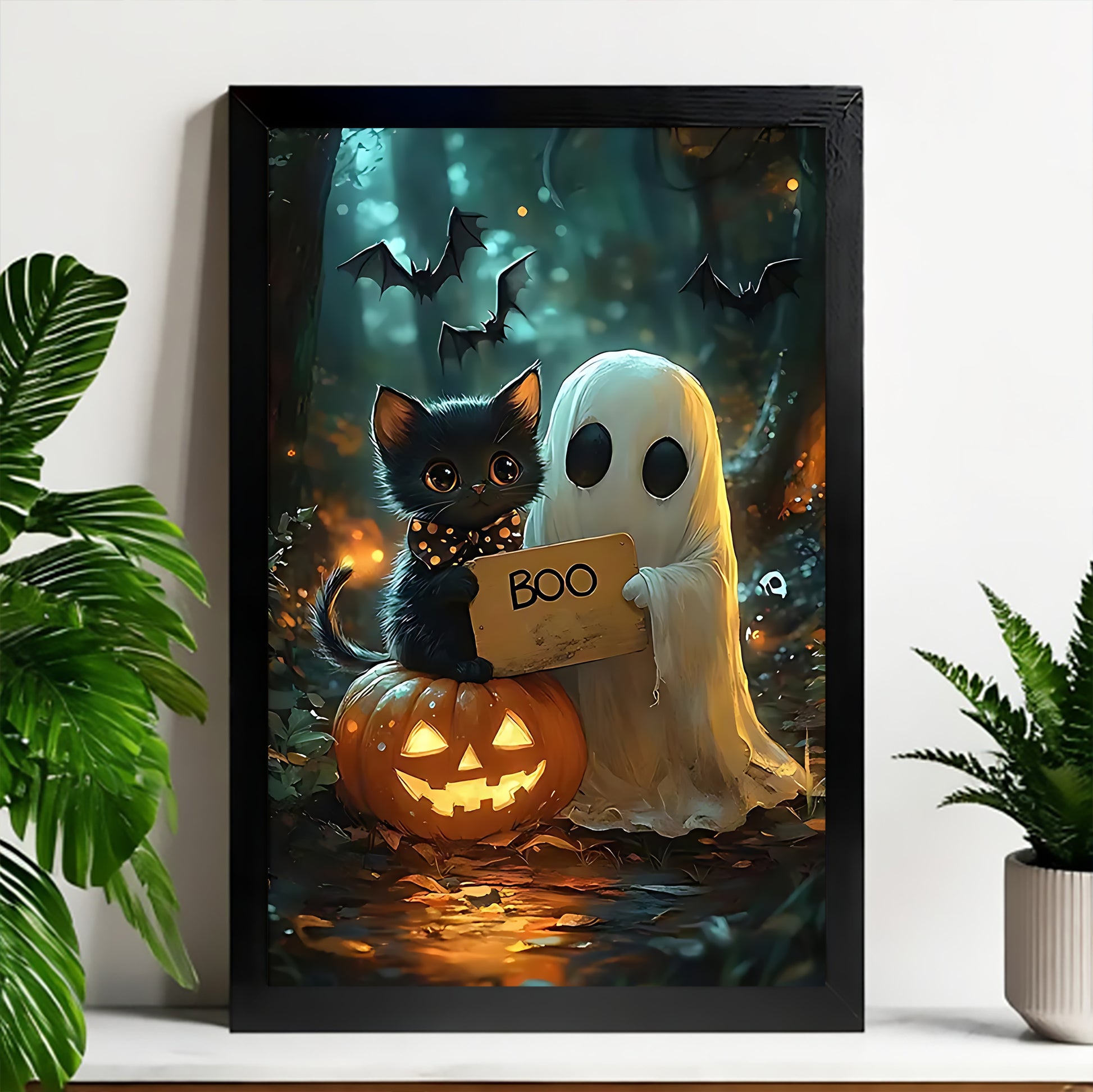 “The cat and ghost are just too cute! I bought it to get ready for Halloween early, and it already makes me smile every time I see it. The frame is well built, not cheap at all.”
