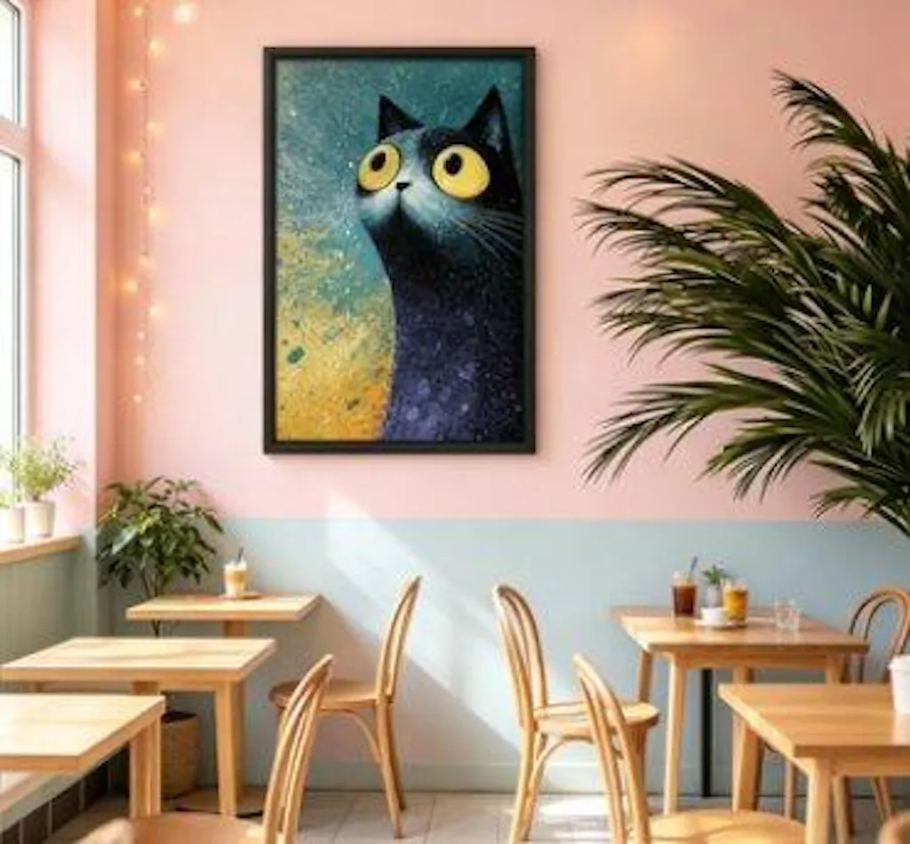 Wide-Eyed Black Cat Wall Art – Textured Framed Canvas Print|Liberty Signs#L1724