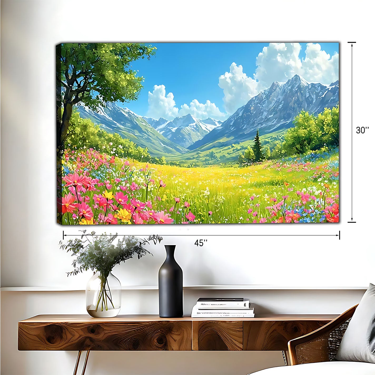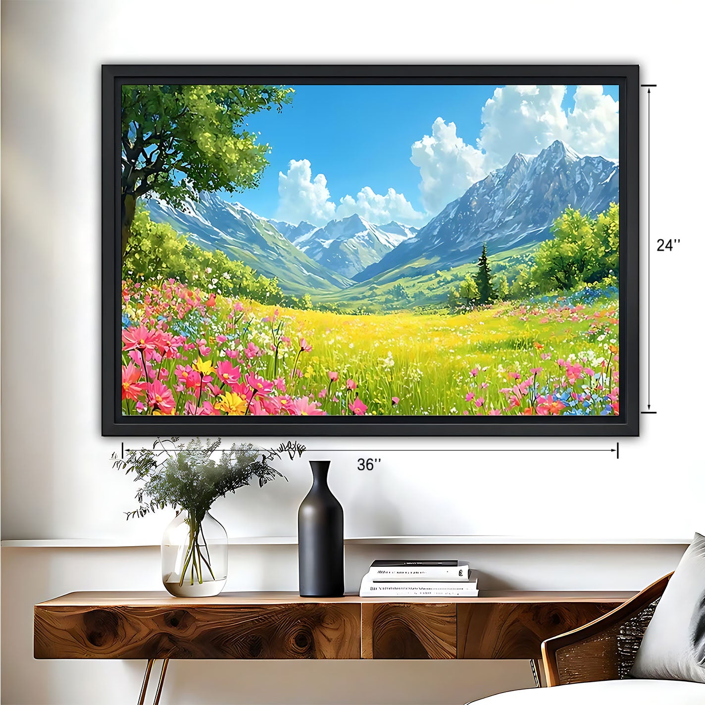 A: Framed art includes a decorative outer wooden frame and comes ready to hang. Canvas art is stretched over an internal wooden stretcher (no outer frame) — it is also ready to hang, and you can later add a decorative frame if you’d like.
