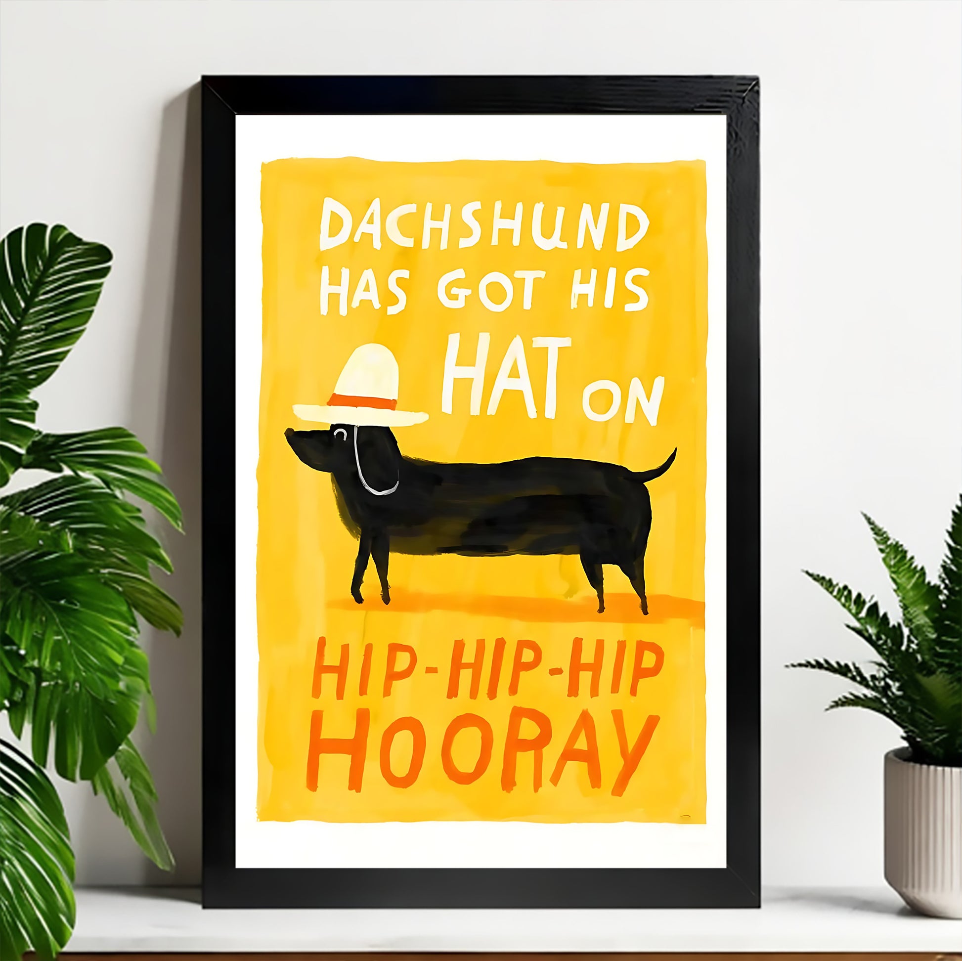 “I’m a dachshund owner and this print is just perfect. The bright yellow makes my kitchen so cheerful.”