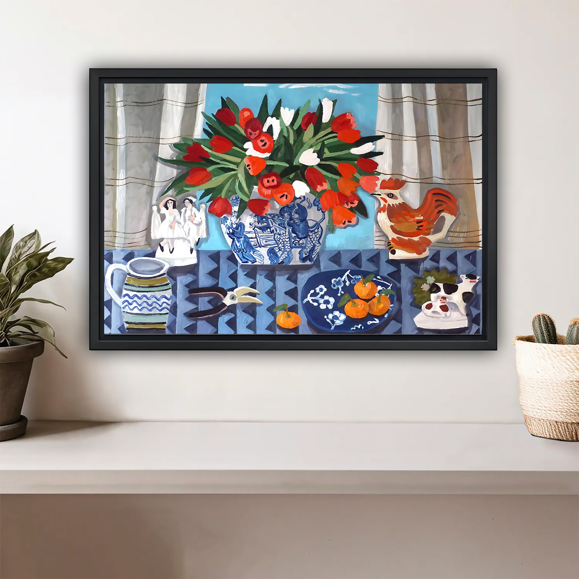 A: Framed art includes a decorative outer wooden frame and comes ready to hang. Canvas art is stretched over an internal wooden stretcher (no outer frame) — it is also ready to hang, and you can later add a decorative frame if you’d like.
